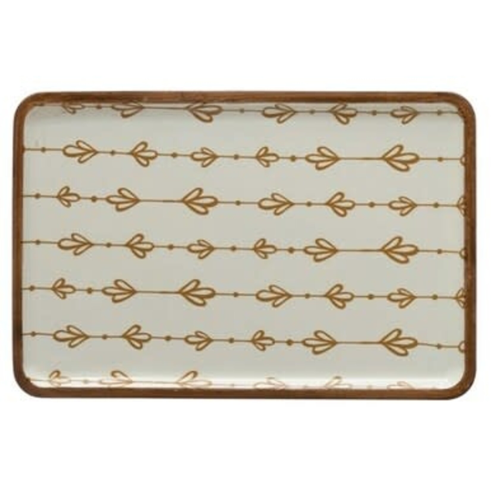 12"L x 8"W Enameled Acacia Wood Trays w/ Patterns