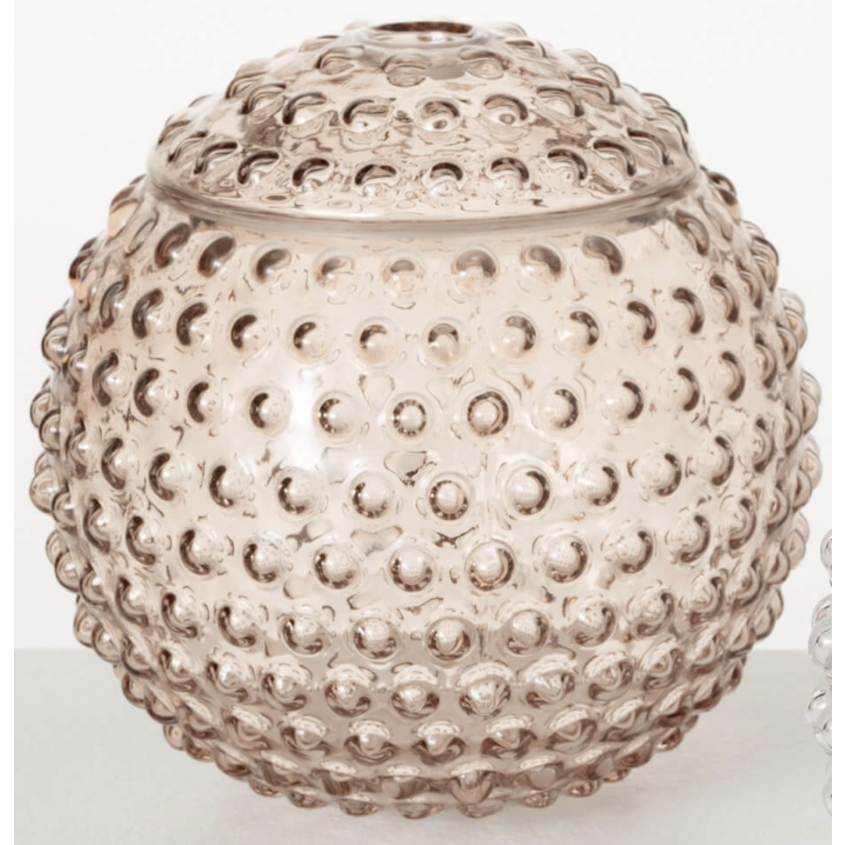 Bringing home a nostalgic Hollywood appeal, this pair of hobnail-style glass vases come complete with matching lid coming together to create an elliptical design. With retro glam appeal, these accents bring a timeless look to your tabletop.