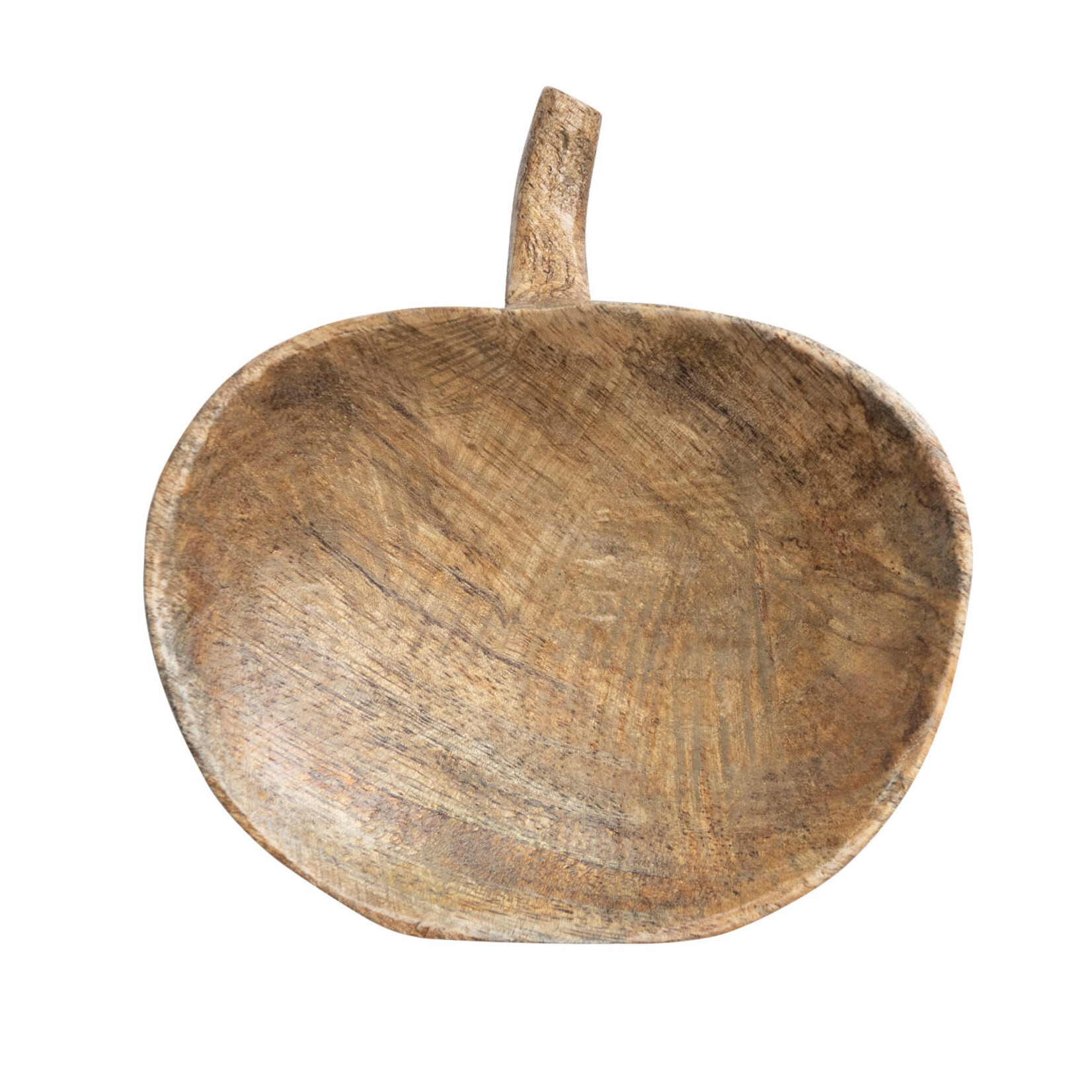 5"L x 2"W Carved Mango Wood Pumpkin Shaped Bowl, Stained Finish