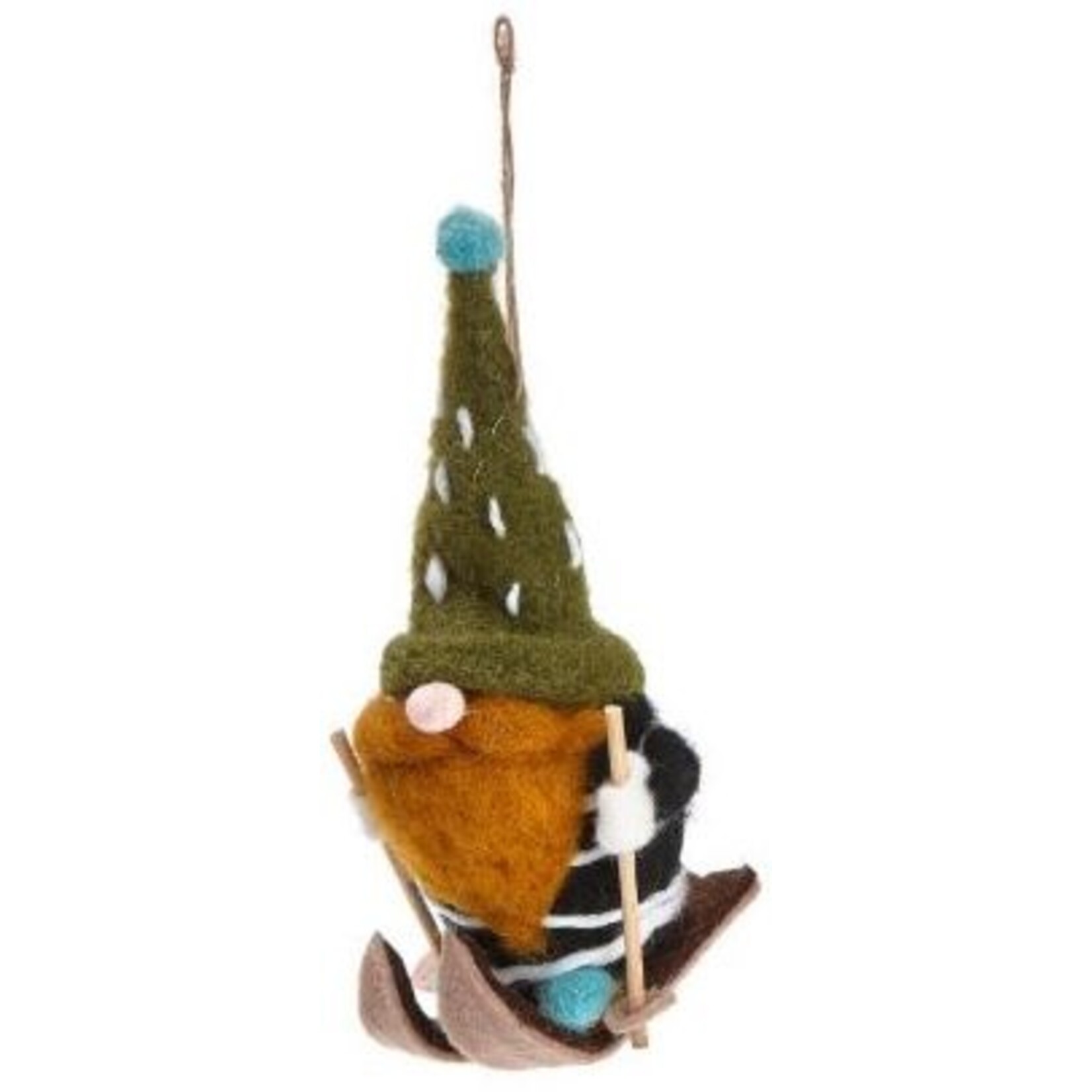 these sporty gnomes are ready for their holiday debut. perfect for hanging on the tree or topping a gift, each is artisan made from wool with a wet felting process. made of 95% wool with a 5% polyfoam fill, these ornaments also feature a natural cord for hanging.