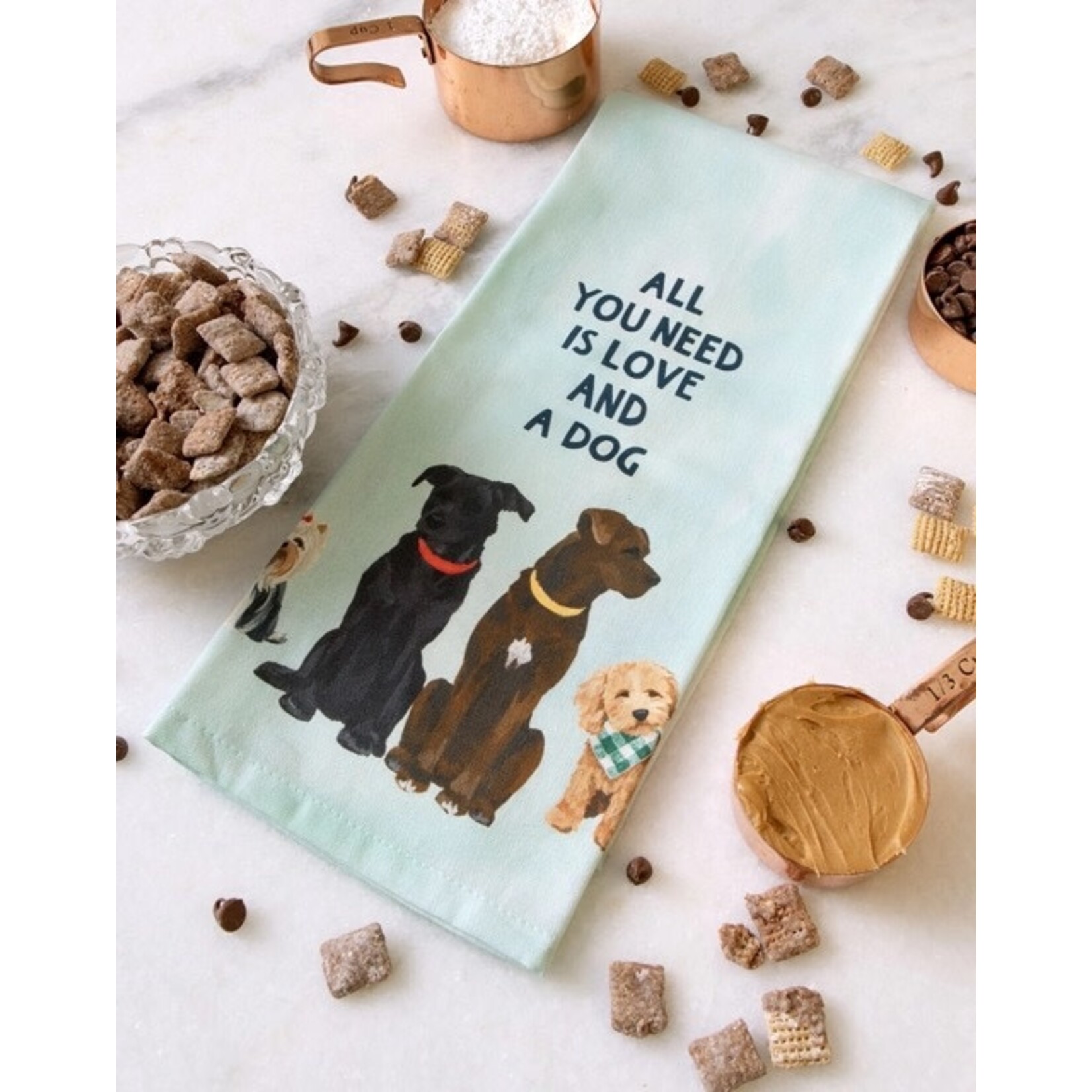 Embrace the bond with your furry friend with our All You Need Is Love And A Dog Kitchen Towel! Crafted from soft, absorbent 100% cotton fabric, it's both practical and heartwarming. Featuring hand-painted portrait-style illustrations alongside this heartwarming sentiment, this towel celebrates the joy of having a canine companion. Whether drying dishes or displayed as a tribute to your beloved pet, it's the perfect gift for pet parents, dog lovers, or anyone who cherishes their four-legged friend.
